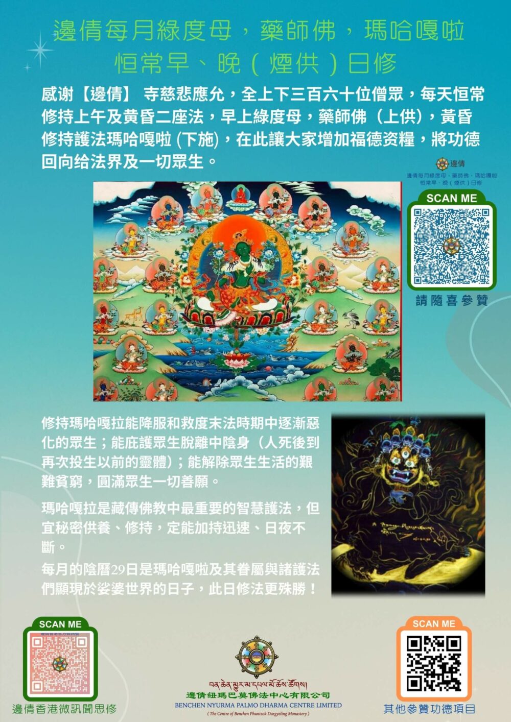 MTH 邊倩每月恒常早、晚綠度母、藥師佛及瑪哈嘎拉(煙供)日修
